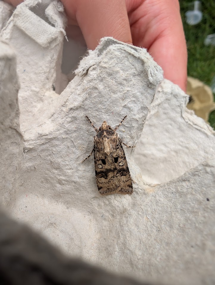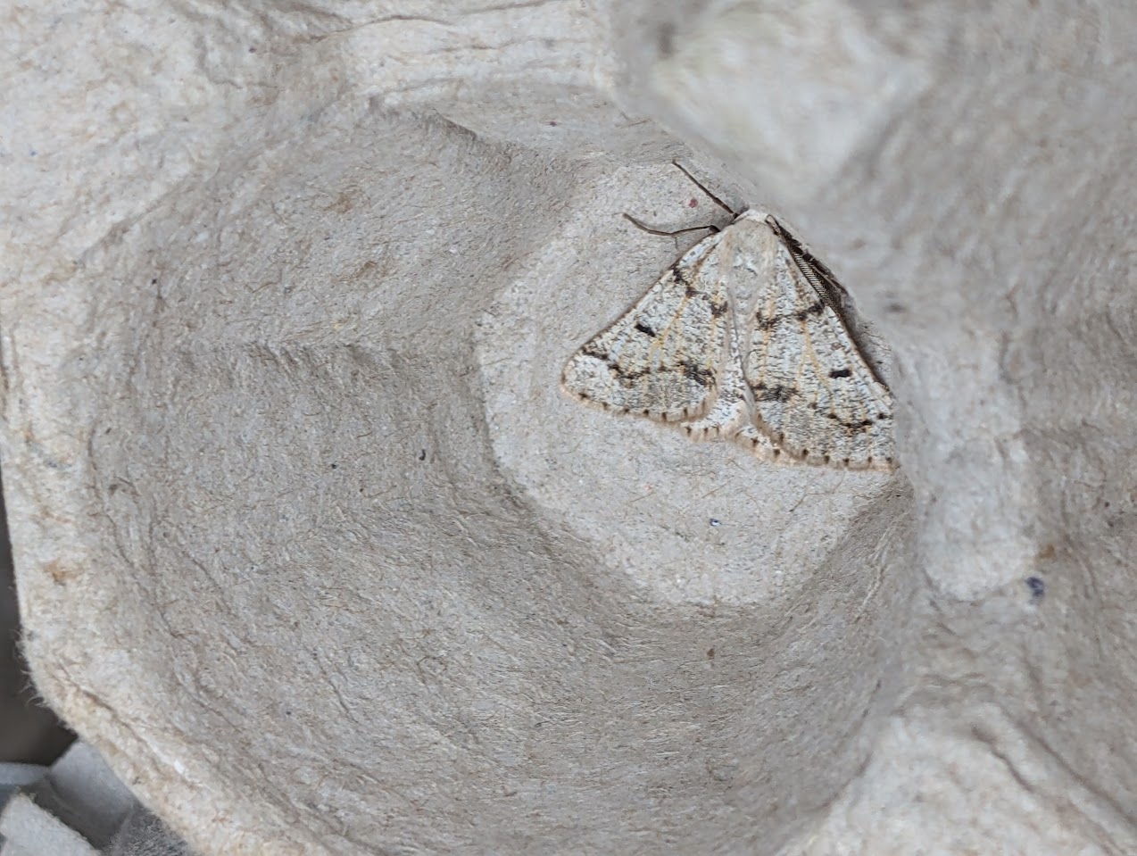 As usual we began by going through the small mammal and moth traps. Unfortunately, the small mammal traps failed to catch anything. The moth traps however did much better. We didn’t catch too many moths but we did catch a number of locally rare species. Most notable was a Grey Scalloped Bar Dyscia fagaria, a scarce species locally that is in decline. We knew it was a good find when all the experienced moth recorders trappers went ‘oooohh’! This species has only been recorded in 9 hectads in D&G previously and this was a new one, so it was a great find.