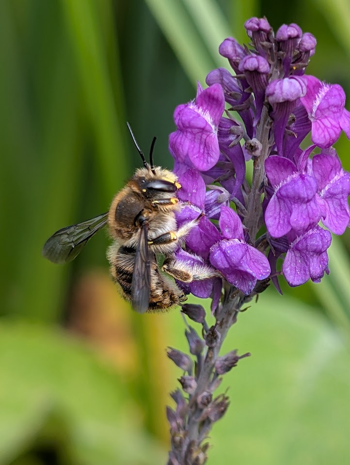 Before the day had even begun a Wool Carder Bee Anthidium manicatum was spotted in the High Slock Cottage garden. This species is near its northern most range in Dumfries and Galloway and has been recorded only scarcely in Wigtownshire so this was a good way to start the day!