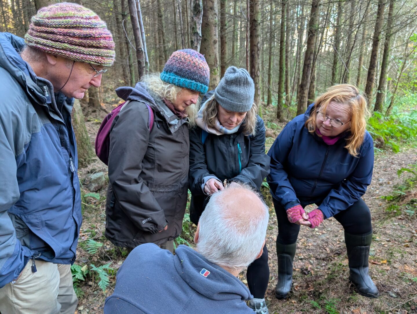 In autumn we ran a bat walk with the community at Ballantrae. We successfully found four different species of bat and did our best to teach the 17 attendees everything we knew about bats! The bats took a little while to show up, but once they did we were treated to Leisler’s/Noctule bats Nyctalus sp flying over our heads, with Daubenton’s Bat, Common and Soprano Pipistrelle feeding along the river below. We also held two fungi walks, led by Peter Norman from Southern Uplands Partnership, both of which fully booked out within 24 hours of advertising the events. These were held at Glenapp Estate and at Barr Trails. We uncovered over 50 species of fungi and also discovered a Parent Bug at Glenapp which was only a second record for South Ayrshire.